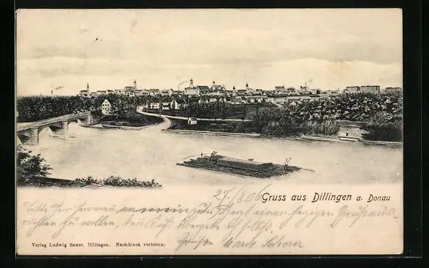 AK Dillingen a. D., Panorama mit Donaubrücke