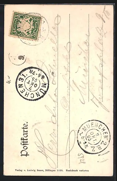 alte Ansichtskarte, gelaufen 1905, Stempelspur, guter Zustand
