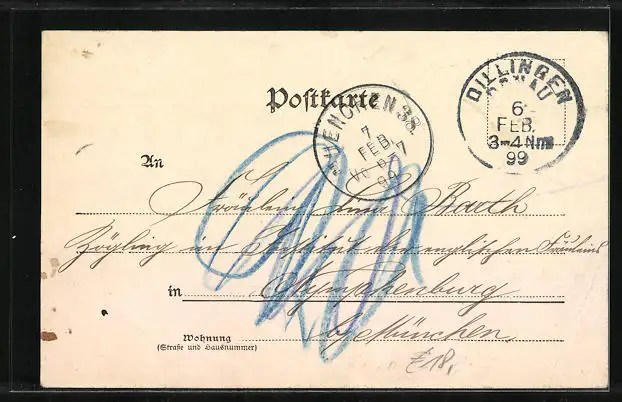 alte Ansichtskarte, gelaufen 1899, Eckknicke li., guter Zustand