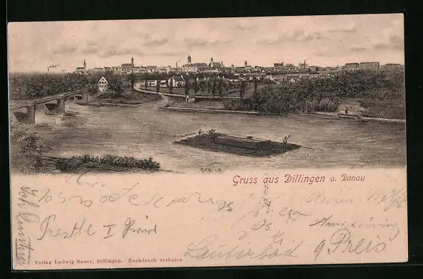 AK Dillingen a. Donau, Ortsansicht mit Flösserei