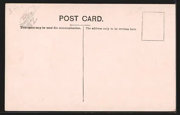 Personenbezogene Daten auf der Rückseite der Karte wurden durch blauen Textmarker unkenntlich gemacht. Die blauen Stellen sind auf die Vorderseite durchgeweicht und wirken sich negativ auf das Postkartenfoto aus