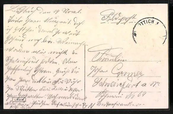alte Ansichtskarte, gelaufen, Briefmarke entfernt, guter Zustand