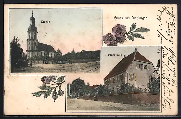 AK Dinglingen, Pfarrhaus, Strassenpartie bei der Kirche