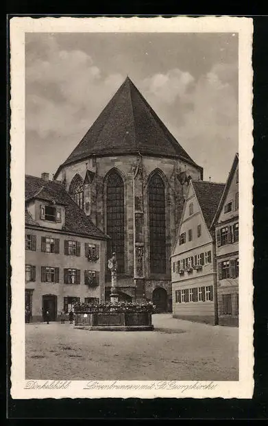 AK Dinkelsbühl, Löwenbrunnen mit St. Georgskirche