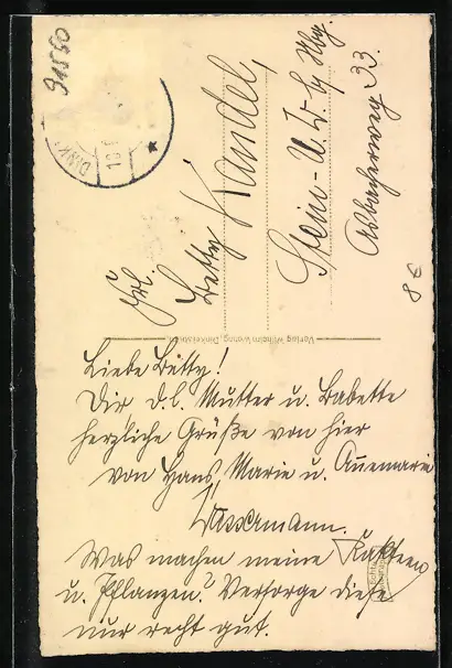 alte Ansichtskarte, gelaufen, Briefmarke entfernt, guter Zustand