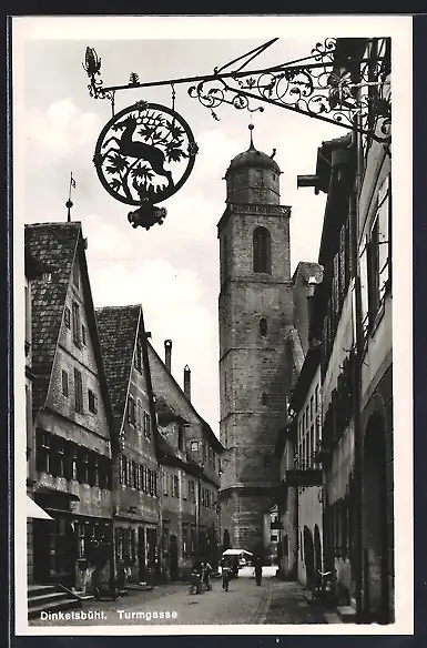 AK Dinkelsbühl, Turmgasse mit Leuten