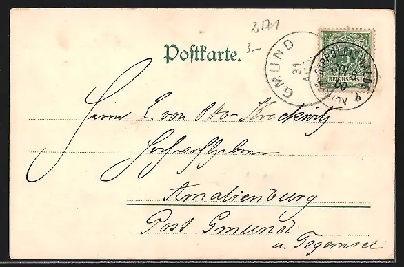 alte Ansichtskarte, gelaufen 1900, guter Zustand