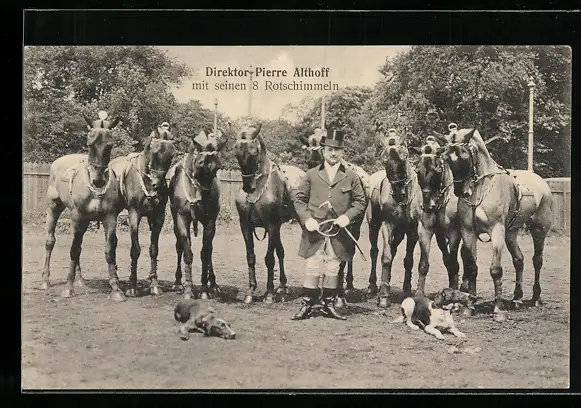 AK Direktor Pierre Althoff mit seinen 8 Rotschimmeln, Zirkus