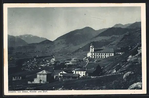 AK Disentis, Ortsansicht von Osten, mit Kloster