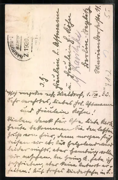 alte Ansichtskarte, gelaufen, Briefmarke entfernt, rückseitig Oberflächenschaden, guter Zustand