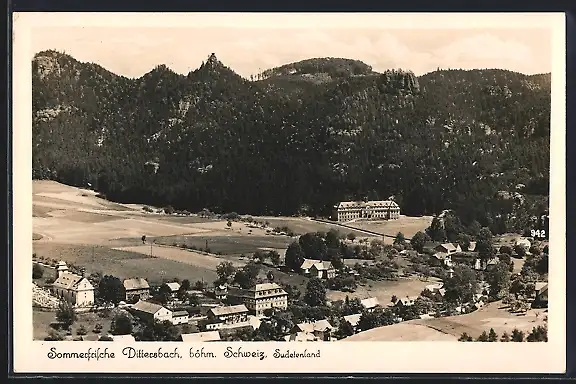 AK Dittersbach /Böhm. Schweiz, Teilansicht aus der Vogelschau