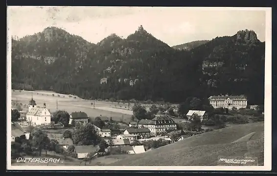 AK Dittersbach / Jetrichovice, Ortsansicht aus der Vogelschau