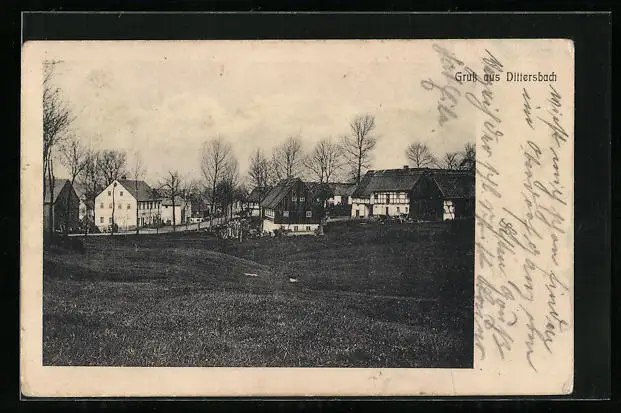 AK Dittersbach, Ortsansicht mit Fachwerkhäusern