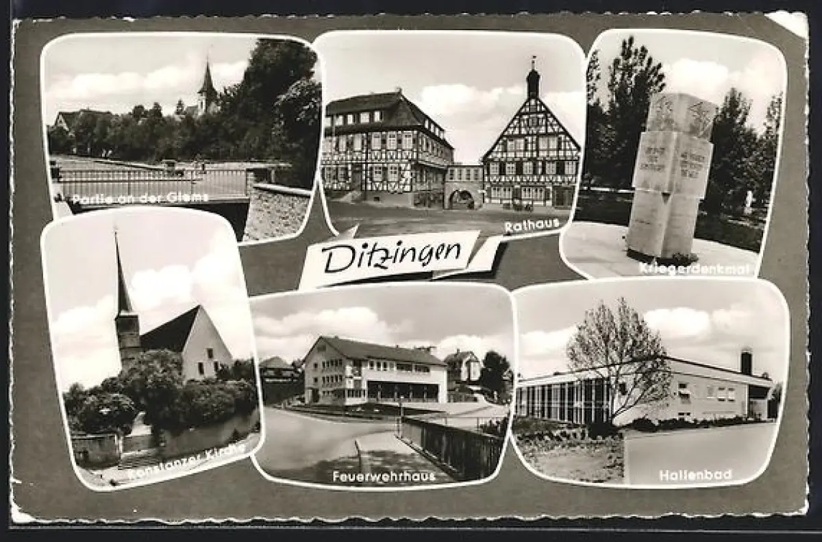 AK Ditzingen, Rathaus, Konstanzer Kirche, Kriegerdenkmal
