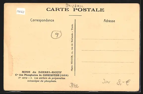 AK Djebel-Kouif, Mine de Djebel-Kouif, Cie des Phosphates de Constantine, Les ateliers de préparation..., Bergbau