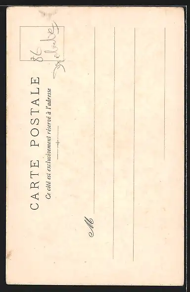 Personenbezogene Daten auf der Rückseite der Karte wurden durch blauen Textmarker unkenntlich gemacht. Die blauen Stellen sind auf die Vorderseite durchgeweicht und wirken sich negativ auf das Postkartenfoto aus