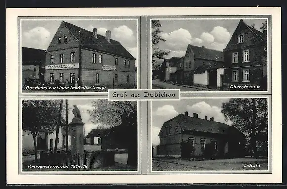 AK Dobichau, Gasthof zur Linde, Schule, Oberstrasse