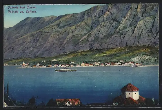 AK Dobrota b. Cattaro, Blick über das Meer auf die Ortschaft