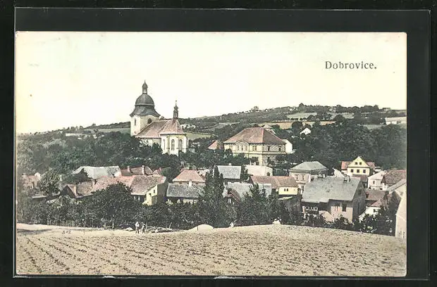 AK Dobrovice, Teilansicht der Stadt mit Kirche