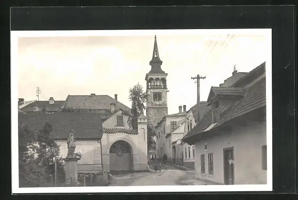 AK Dobruska, Strassenpartie, Blick zur Kirche