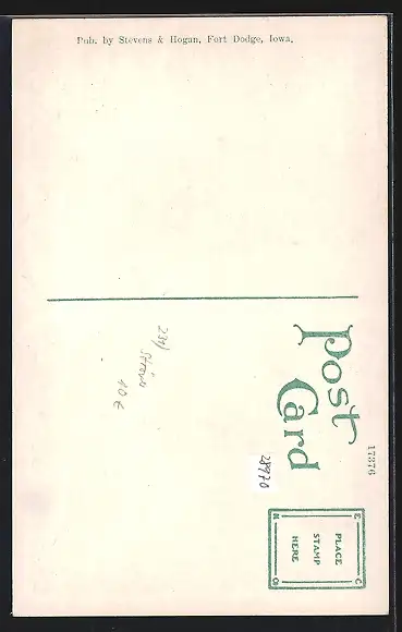 Personenbezogene Daten auf der Rückseite der Karte wurden durch blauen Textmarker unkenntlich gemacht. Die blauen Stellen sind auf die Vorderseite durchgeweicht und wirken sich negativ auf das Postkartenfoto aus