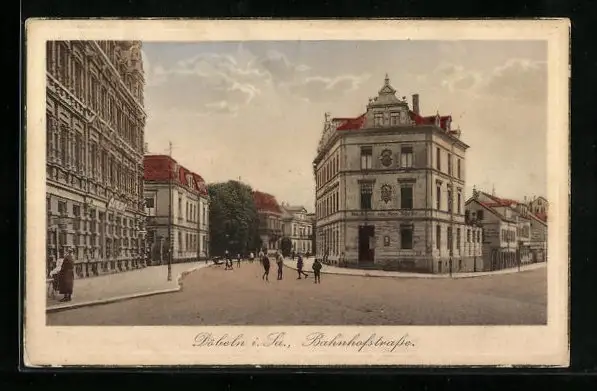 AK Döbeln /Sa., Bahnhofstrasse mit Bäckerei Max Starke