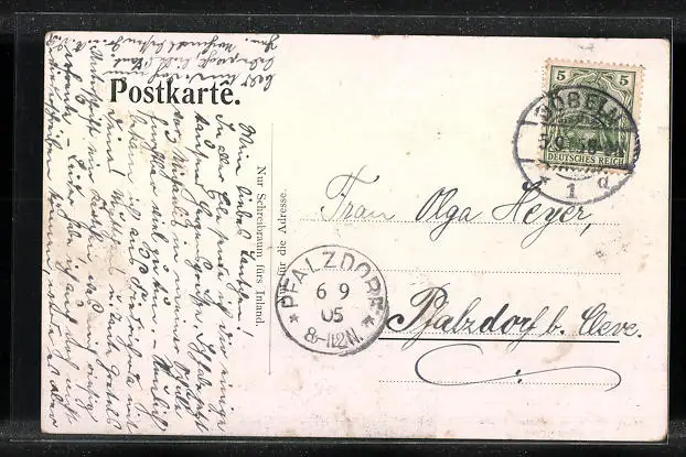 alte Ansichtskarte, gelaufen 1905, Vertikale Bugspur re., Eckknicke unten li. und oben re., guter Zustand