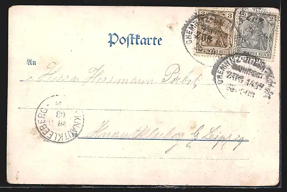 gelaufen 1903, Ecken bestoßen, guter Zustand