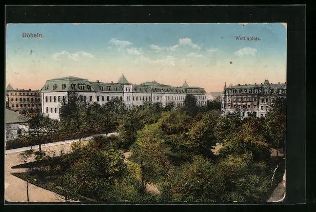 AK Döbeln, Wettinplatz aus der Vogelschau