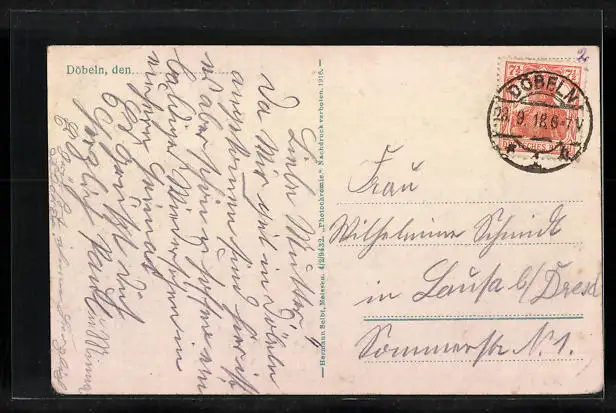 alte Ansichtskarte, gelaufen 1918, Eckknick unten li., Abriebspuren Ränder u. Ecken, guter Zustand
