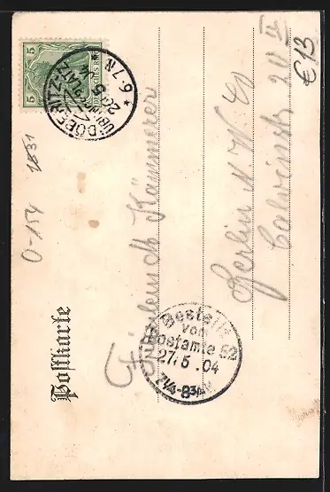 gelaufen 1904, Eckknick re. unten, Stempelspur, guter Zustand