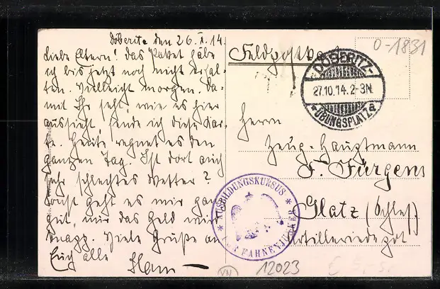 alte Ansichtskarte, gelaufen 1914 als Feldpost, guter Zustand