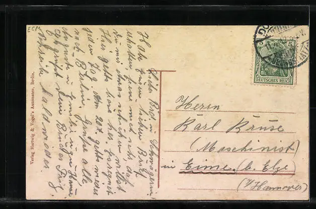 alte Ansichtskarte, gelaufen 1912, Stempelspur, guter Zustand