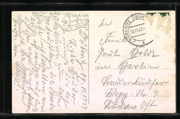alte Ansichtskarte, gelaufen, Briefmarke entfernt, rückseitig Oberflächenschaden, guter Zustand