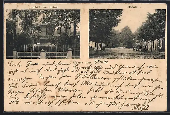 AK Dömitz, Friedrich Franz-Denkmal, Elbstrasse