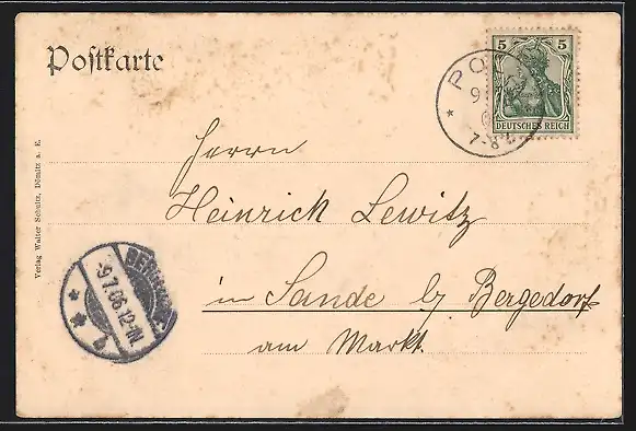 alte Ansichtskarte, gelaufen 1906, guter Zustand