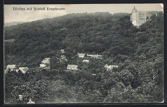 AK Dörfles, Ortsansicht mit Schloss Ernstbrunn