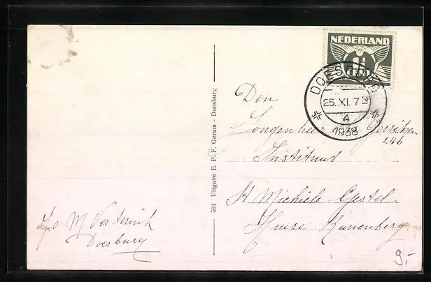 gelaufen 1938, rückseitig Klebe- und Papierreste, guter Zustand
