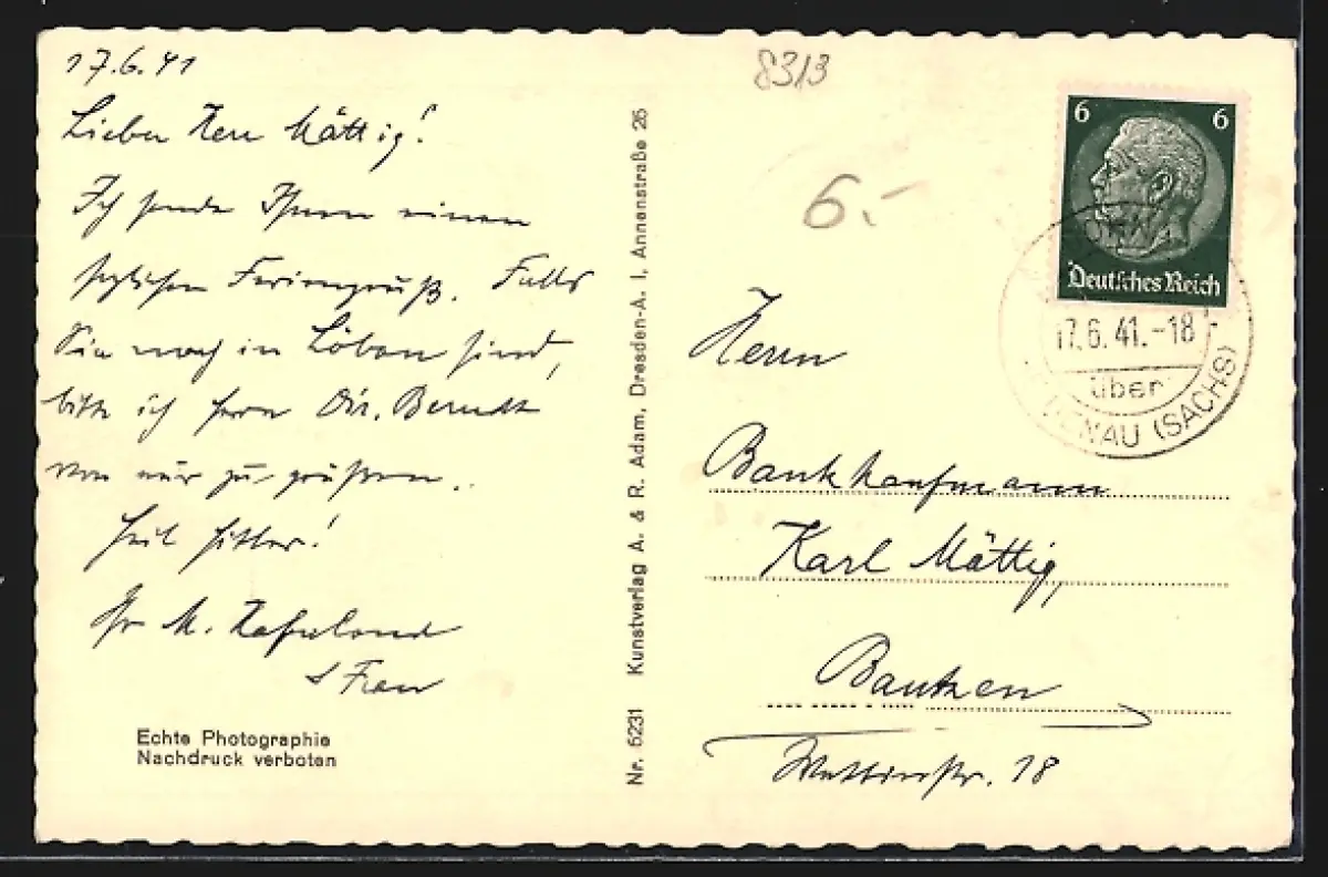 alte Ansichtskarte, gelaufen 1941, guter Zustand