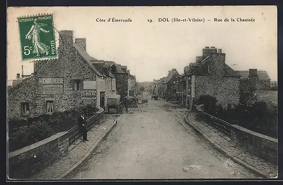 AK Dol, Rue de la Chaussée avec maisons en pierre et charrette