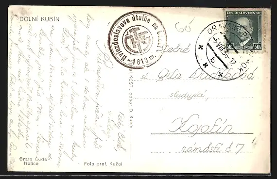 AK Dolní Kubin, Ortsansicht mit Brücke