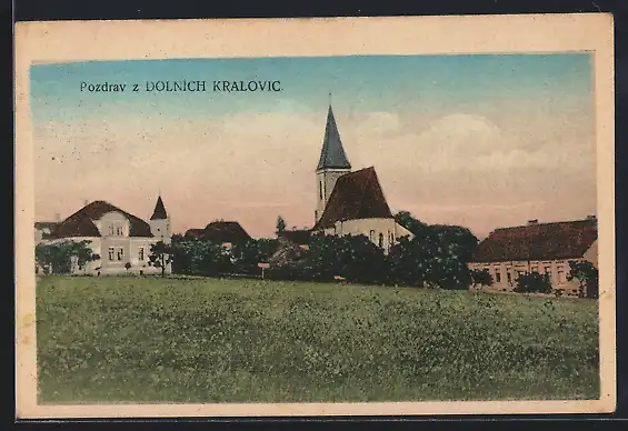 AK Dolnich Kralove, Ortspartie mit Kirche