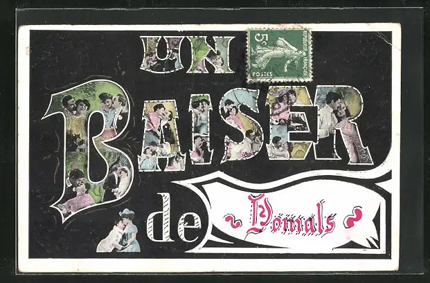 Personenbezogene Daten auf der Rückseite der Karte wurden durch blauen Textmarker unkenntlich gemacht. Die blauen Stellen sind auf die Vorderseite durchgeweicht und wirken sich negativ auf das Postkartenfoto aus