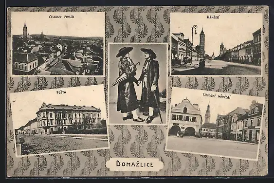 AK Domazlice, Posta, Namesti, Chodske Namesti a Celovy pohled