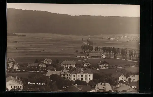 AK Dombresson, Teilansicht mit Landstrasse aus der Vogelschau