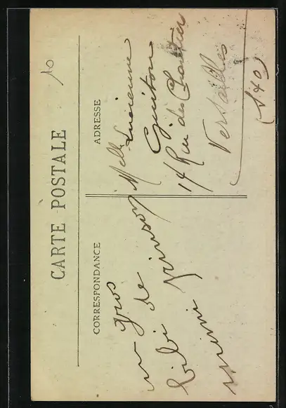 Personenbezogene Daten auf der Rückseite der Karte wurden durch blauen Textmarker unkenntlich gemacht. Die blauen Stellen sind auf die Vorderseite durchgeweicht und wirken sich negativ auf das Postkartenfoto aus