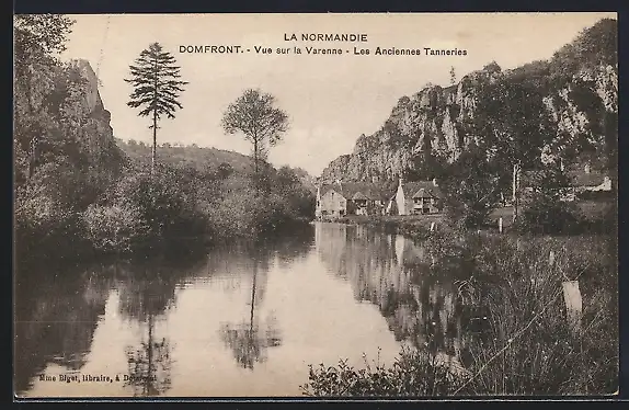 AK Domfront, Vue sur la Varenne, Les Anciennes Tanneries
