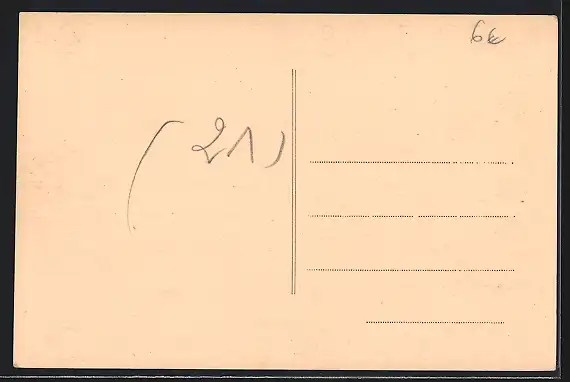 Personenbezogene Daten auf der Rückseite der Karte wurden durch blauen Textmarker unkenntlich gemacht. Die blauen Stellen sind auf die Vorderseite durchgeweicht und wirken sich negativ auf das Postkartenfoto aus