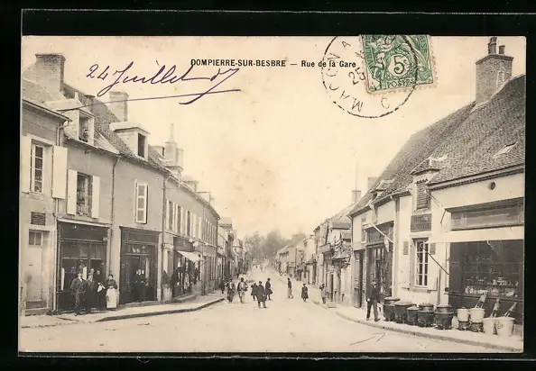 AK Dompierre-sur-Besbre, Rue de la Gare, Strassenpartie