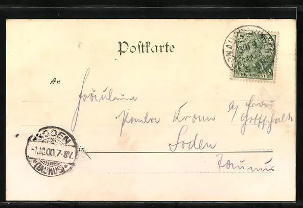 alte Ansichtskarte, gelaufen 1900, guter Zustand